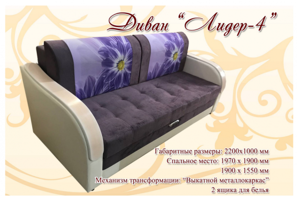 Комплектация: имеется вместительный ящик для белья , возможна комплектация креслом (кресло- кровать)